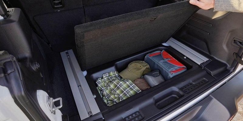 The base trim level's cabin features a height-adjustable driver's seat with lumbar adjustment, a one-piece folding rear seat, cloth upholstery, and a driver information display. The Sport S tacks on power locks and windows, a leather-wrapped steering wheel, and standard air conditioning. Choose the mid-level Sahara and you'll get a 115-volt power outlet, a larger driver information display, the Uconnect infotainment system with Apple CarPlay and Android Auto smartphone integration, a 7-inch touch screen, and satellite radio.