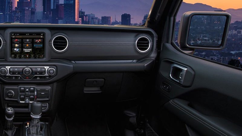 The Sport S trim features 17-inch aluminum wheels and offers an available Uconnect® 4 7-Inch Touchscreen that includes Apple CarPlay® & Android Auto™ Integration. This system comes standard on the Gladiator Overland – but you can upgrade to an 8.4 inch screen with the Overland for something extra! The Overland also offers a leather trimmed interior, available and Adaptive Cruise Control & Forward Collision Warning with Active braking safety systems. Finally, the Rubicon trim level puts the Gladiator at its most rugged and extreme – featuring an Electronic Disconnecting Front Sway Bar, Locking Front and Rear Differentials, a forward facing TrailCam Off-Road Camera, & 33-Inch Tires with High Clearance Fender Flares!