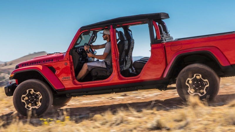 If you’re looking for a truly unique vehicle to own – the 2020 Gladiator has you covered – classic Jeep lines combined with new bold edges make the Gladiator truly a standout on the road! The all-new 2020 Gladiator comes in 4 trim levels – Sport, Sport S, Overland, and Rubicon. All trims area equipped with heavy-duty Dana® 44 front and rear axles for heightened durability and performance on the road. You’ll be able to feel freedom on every drive with the 2020 Gladiator drive thanks to the available zipperless Sunrider® soft top with easy one-handed operation or easily pop off the front panels of the Freedom Top® hardtop. The 2020 Gladiator also features lightweight aluminum doors that can be easily removed for an extra dose of exploring the open road.
