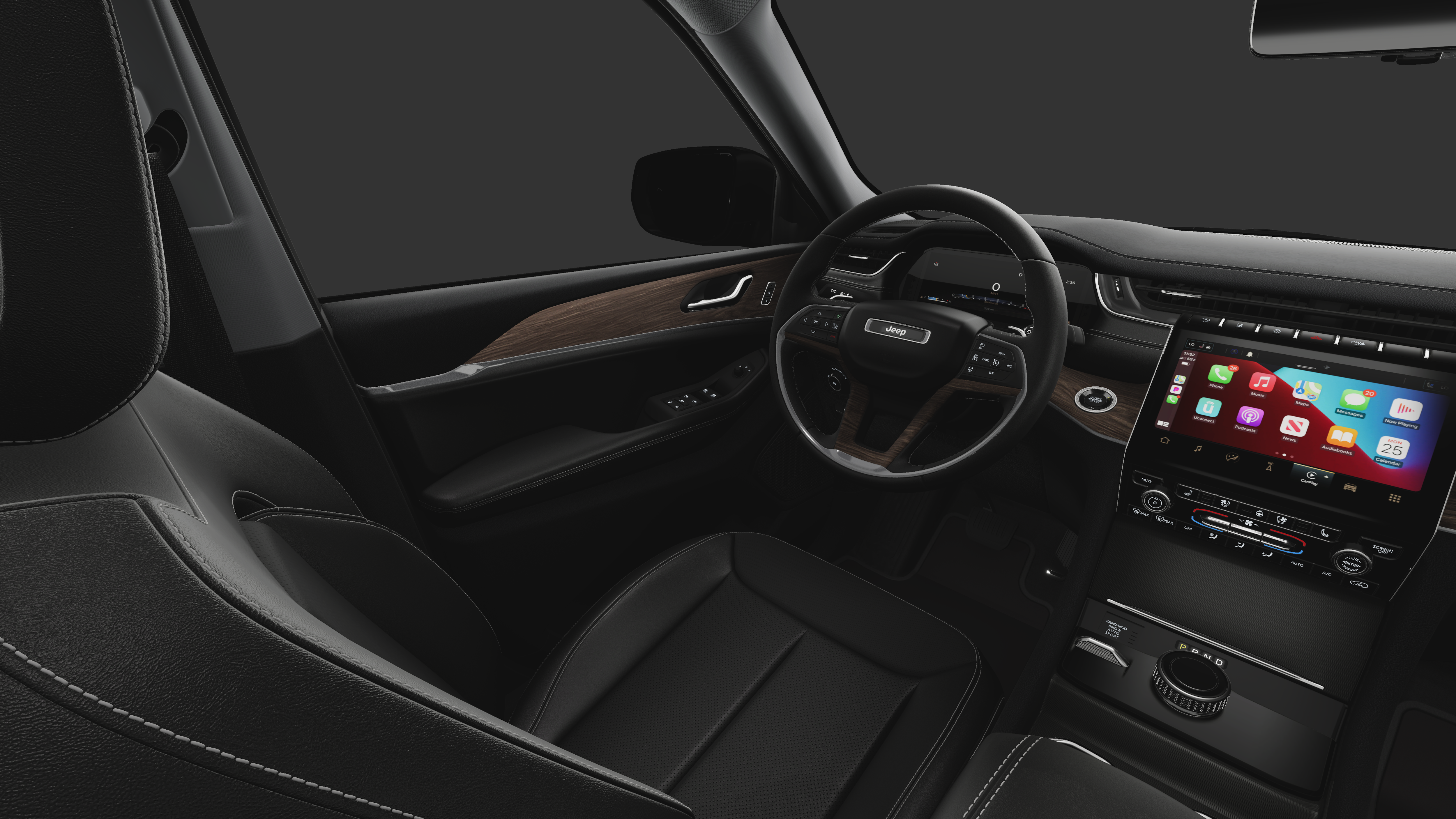 4WD, 4WD, 2nd-Row Manual Window Shades, 4-Wheel Disc Brakes, 6 Speakers, ABS brakes, Active Noise Control System, Air Conditioning, Alloy wheels, AM/FM radio: SiriusXM with 360L, Anti-whiplash front head restraints, Audio memory, Auto High-beam Headlights, Auto-Dimming Exterior Driver Mirror, Automatic temperature control, Brake assist, Bumpers: body-color, Capri Leatherette Seats, Capri Leatherette with Axis II Seats, Compass, Cruise control, Delay-off headlights, Driver door bin, Driver vanity mirror, Dual front impact airbags, Dual front side impact airbags, Dual-Pane Panoramic Sunroof, Electronic Stability Control, Emergency communication system, Four wheel independent suspension, Front anti-roll bar, Front Bucket Seats, Front Center Armrest w/Storage, Front dual zone A/C, Front fog lights, Front License Plate Bracket, Front reading lights, Front/Rear Doors and Liftgate with Passive Entry, Fully automatic headlights, Garage door transmitter, Heated door mirrors, Heated front seats, Heated rear seats, Heated steering wheel, Illuminated entry, Integrated Off-Road Camera, Intersection Collision Assist System, Knee airbag, Low tire pressure warning, Luxury Tech Group II, Memory seat, Memory Steering Column, Model Year Tracking, Navigation System, Normal Duty Suspension, Occupant sensing airbag, Outside temperature display, Overhead airbag, Overhead console, Panic alarm, ParkSense Front/Rear Park Assist with Stop, ParkView Rear Back-Up Camera, Passenger door bin, Passenger vanity mirror, Power door mirrors, Power driver seat, Power Liftgate, Power passenger seat, Power steering, Power Tilt/Telescope Steering Column, Power windows, Quick Order Package 22E, Radio data system, Radio: Uconnect 5 Nav with 10.1 Display, Rain Sensitive Windshield Wipers, Rear anti-roll bar, Rear Back-Up Camera Washer, Rear reading lights, Rear window defroster, Rear window wiper, Rearview Autodim Digital Display Mirror, Remote keyless entry, Security system, Speed-Sensitive Wipers, Split folding rear seat, Spoiler, Steering wheel mounted audio controls, Surround View Camera System, Tachometer, Telescoping steering wheel, Tilt steering wheel, Traction control, Trip computer, Turn signal indicator mirrors, Variably intermittent wipers, Ventilated Front Seats, Voltmeter, Wheels: 18 x 8 Polished/Painted Aluminum, Wheels: 20 x 8.5 Machined/Painted Aluminum, Wireless Charging Pad.