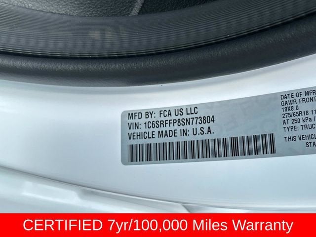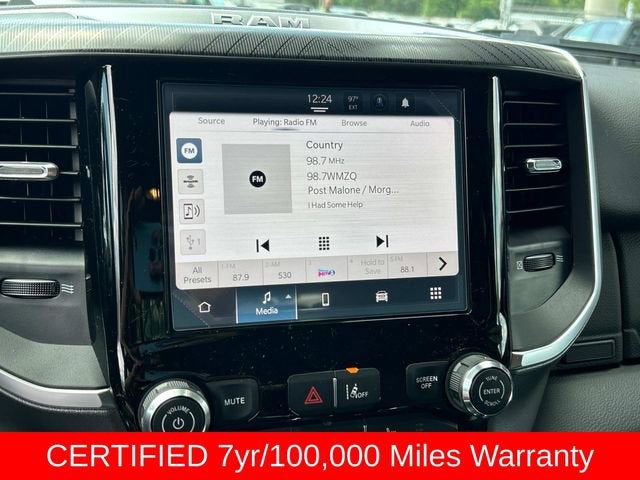 115V Auxiliary Power Outlet, 2nd Row In Floor Storage Bins, 3 Rear Seat Head Restraints, 4 Way Front Headrests, 4-Wheel Disc Brakes, 400W Inverter, 4G LTE Wi-Fi Hot Spot, 6 Speakers, ABS brakes, Air Conditioning, Alloy wheels, AM/FM radio, Anti-Spin Differential Rear Axle, Apple CarPlay/Android Auto, Auto High-beam Headlights, Auto Power-Folding Mirrors, Auto-Dimming Exterior Driver Mirror, Auto-Dimming Rear-View Mirror, Big Horn Level 1 Equipment Group, Black Exterior Mirrors, Black Interior Accents, Black Premium Power Mirrors, Body Color Door Handles, Body Color Front Bumper, Body Color Rear Bumper w/Step Pads, Body Color Tailgate Handle, Brake assist, Bucket Seats, Bumpers: chrome, Cloth Bench Seat, Compass, Connectivity - US/Canada, Convex Wide-Angle Exterior Mirror Insert, Cruise control, Delay-off headlights, Deluxe Cloth Bucket Seats, Driver door bin, Dual front impact airbags, Dual front side impact airbags, Electronic Stability Control, Exterior Mirrors Courtesy Lamps, Exterior Mirrors w/Heating Element, Exterior Mirrors w/Supplemental Signals, Front anti-roll bar, Front Center Armrest w/Storage, Front fog lights, Front License Plate Bracket, Front reading lights, Front Seat Back Map Pockets, Front wheel independent suspension, Full Length Floor Console, Fully automatic headlights, Glove Box Lamp, GPS Antenna Input, Grille Surround 1 Body Color Texture 1 Black, Heated door mirrors, Heated Front Seats, Heated Steering Wheel, Illuminated entry, Integrated Voice Command w/Bluetooth®, Leather Wrapped Steering Wheel, Low tire pressure warning, Manual Adjust 4-Way Front Passenger Seat, Manual Folding Exterior Mirrors, Occupant sensing airbag, Outside temperature display, Overhead airbag, Overhead console, Panic alarm, ParkView Rear Back-Up Camera, Passenger door bin, Passenger vanity mirror, Power 2-Way Driver Lumbar Adjust, Power Adjust 8-Way Driver Seat, Power Adjustable Pedals, Power door mirrors, Power steering, Power windows, Quick Order Package 21Z Big Horn, Radio data system, Radio: Uconnect 5 W w/8.4 Display, RAM Grille Badge - Chrome, Rear 60/40 Folding Seat, Rear anti-roll bar, Rear Center Armrest, Rear Power Sliding Window, Rear seat center armrest, Rear step bumper, Rear Window Defroster, Remote keyless entry, Split folding rear seat, Sport Appearance Package, Steering Wheel Mounted Audio Controls, Sun Visors w/Illuminated Vanity Mirrors, Supplier Part Tracking (J-1), Tachometer, Telescoping steering wheel, Tilt steering wheel, Traction control, Trip computer, Universal Garage Door Opener, USB Host Flip, Variably intermittent wipers, Voltmeter, Wheel to Wheel Side Steps, Wheels: 18 x 8 Cast-Aluminum Painted.