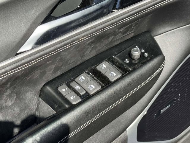 118 Mph Maximum Speed Calibration, 19 Speaker McIntosh Audio System, 2nd Row Manual Window Shades, 3 Panel Sunroof, 3.55 Rear Axle Ratio, 3rd row seats: bench, 4-Wheel Disc Brakes, 9 Speakers, ABS brakes, Air Conditioning, Alloy wheels, AM/FM radio: SiriusXM with 360L, Anti-whiplash front head restraints, Apple CarPlay/Android Auto, Audio memory, Augmented HUD, Auto Adjust in Reverse Exterior Mirrors, Auto High-beam Headlights, Auto-dimming door mirrors, Auto-Dimming Exterior Driver Mirror, Auto-dimming Rear-View mirror, Auto-leveling suspension, Automatic temperature control, Black Appearance Package, Black Exterior Accents, Brake assist, Bumpers: body-color, Cargo Cover, Cluster 12 TFT Color Display, Compass, Cruise control, Delay-off headlights, Driver door bin, Driver vanity mirror, Driver's Seat Mounted Armrest, Dual front impact airbags, Dual front side impact airbags, Electronic Stability Control, Emergency communication system: Jeep Connect, Exterior Mirrors Approach Lamps, Exterior Mirrors with Memory, Exterior Mirrors with Supplemental Signals, Exterior Parking Camera Rear, Four wheel independent suspension, Front anti-roll bar, Front Bucket Seats, Front Center Armrest w/Storage, Front dual zone A/C, Front fog lights, Front reading lights, Fully automatic headlights, Garage door transmitter, Heated door mirrors, Heated Exterior Mirrors, Heated front seats, Heated rear seats, Heated steering wheel, Illuminated entry, Instrument Panel, Interior Rear Facing Camera, Knee airbag, Leather Trimmed Bucket Seats, Limited Reserve Package, Low tire pressure warning, Luxury Front and Rear Floor Mats, Memory seat, MyFlexCare Service Plan, Navigation System, Normal Duty Suspension, Occupant sensing airbag, Outside temperature display, Overhead airbag, Overhead console, P and P Park and Unpark Assist with Stop System, Panic alarm, Passenger door bin, Passenger seat mounted armrest, Passenger vanity mirror, Power Deployable Running Boards, Power door mirrors, Power driver seat, Power Liftgate, Power passenger seat, Power steering, Power windows, Quadra-Lift Air Suspension, Quick Order Package 29D Reserve, Radio data system, Radio: Uconnect 5 Nav with 12.0 Display, Rain sensing wipers, Rear air conditioning, Rear anti-roll bar, Rear reading lights, Rear seat center armrest, Rear window defroster, Rear window wiper, Reclining 3rd row seat, Remote keyless entry, Reversible Carpet/Vinyl Cargo Mat, Security system, Semi Active Damping, Side Distance Warning, Smartphone as a Key Prep, Speed-sensing steering, Speed-Sensitive Wipers, Split folding rear seat, Steering wheel memory, Steering wheel mounted audio controls, Surround View Camera System, Tachometer, Telescoping steering wheel, Tilt steering wheel, Titanium Daylight Opening Upper, Titanium Upper Grille Applique, Traction control, Trip computer, Turn signal indicator mirrors, Variably intermittent wipers, Ventilated front seats, Ventilated rear seats, Voltmeter, Wheels: 20 x 9 Aluminum Painted, Wheels: 22 x 9 Painted Gloss Black.