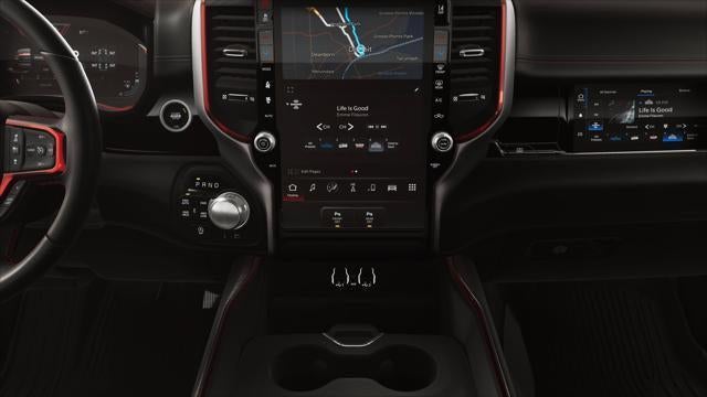 10 Speakers, 115V Auxiliary Rear Power Outlet, 14.4 Touchscreen Display, 2-Door Passive Entry, Front Door Locks, 3.92 Rear Axle Ratio, 4 Way Front Headrests, 4-Wheel Disc Brakes, 4G LTE Wi-Fi Hot Spot, ABS brakes, Accent Color Door Handles, Accent Color Premium Power Mirrors, Accent Color Tailgate Handle, Active Noise Control System, Air Conditioning, Alloy wheels, AM/FM radio: SiriusXM with 360L, Apple CarPlay, Apple CarPlay/Android Auto, Auto High-beam Headlights, Auto Power-Folding Mirrors, Auto-Dimming Exterior Driver Mirror, Auto-dimming Rear-View mirror, Automatic temperature control, Black Exterior Mirrors, Black Painted Exterior Mirrors Caps, Brake assist, Bucket Seats, Cloth/Vinyl Bucket Seats, Compass, Connected Travel and Traffic Services, Connectivity - US/Canada, Convex Wide-Angle Exterior Mirror Insert, Cruise control, Delay-off headlights, Disassociated Touchscreen Display, Dome Dual LED Reading Lamp, Driver door bin, Driver Seat Memory, Driver vanity mirror, Dual front impact airbags, Dual front side impact airbags, Dual Wireless Charging Pad, Dual-Pane Panoramic Sunroof, Electronic Stability Control, Exterior Mirrors Approach Lamps, Exterior Mirrors Courtesy Lamps, Exterior Mirrors with Heating Element, Exterior Mirrors with Memory, Exterior Mirrors with Supplemental Signals, Front anti-roll bar, Front Bucket Seats, Front Center Armrest w/Storage, Front dual zone A/C, Front fog lights, Front License Plate Bracket, Front Passenger Interactive Display, Front reading lights, Front Seat Back Map Pockets, Front wheel independent suspension, Full Length Upgraded Floor Console, Fully automatic headlights, Garage door transmitter, Global Telematics Box Module, Google Android Auto, GPS Antenna Input, GPS Navigation, Harman/Kardon 19 Speaker Premium Sound, HD Radio, Heated door mirrors, Heated Front Seats, Heated front seats, Heated Second Row Seats, Heated Steering Wheel, Heated steering wheel, Illuminated entry, Integrated Center Stack Radio, Integrated Voice Command with Bluetooth®, Leather steering wheel, Low tire pressure warning, Manual Folding Exterior Mirrors, Media Hub with 2 Charge Only USBs, Mopar Black Tubular Side Steps, MyFlexCare Service Plan, Navigation System, Occupant sensing airbag, Off-Road Information Pages, Outside temperature display, Overhead airbag, Overhead console, Panic alarm, ParkView Rear Back-Up Camera, Passenger door bin, Passenger vanity mirror, Power 2-Way Driver Lumbar Adjust, Power 2-Way Passenger Lumbar Adjust, Power Adjust 8-Way Driver Seat, Power Adjust 8-Way Front Passenger Seat, Power Adjustable Pedals with Memory, Power door mirrors, Power driver seat, Power steering, Power Tailgate, Power windows, Proximity Approach/Departure Lamps, Quick Order Package 21W Rebel, Radio data system, Radio: Uconnect 5 Nav with 14.4 Display, Radio: Uconnect 5 Navigation with 12.0 Display, Radio/Driver Seat/Mirrors/Pedals Memory, Rain Sensitive Windshield Wipers, Rear 60/40 Folding Seat, Rear anti-roll bar, Rear seat center armrest, Rear step bumper, Rear Wheelhouse Liners, Rear Window Defroster, Rebel Level 2 Equipment Group, Remote keyless entry, Security Alarm, SiriusXM Radio Service, SiriusXM with 360L, Smartphone as a Key Capable, Split folding rear seat, Steering wheel mounted audio controls, Tachometer, Telescoping steering wheel, Tilt steering wheel, Traction control, Trip computer, USB Host Flip, Variably intermittent wipers, Voltmeter, Wheels: 18 x 8.0 Painted Mid-Gloss Black.