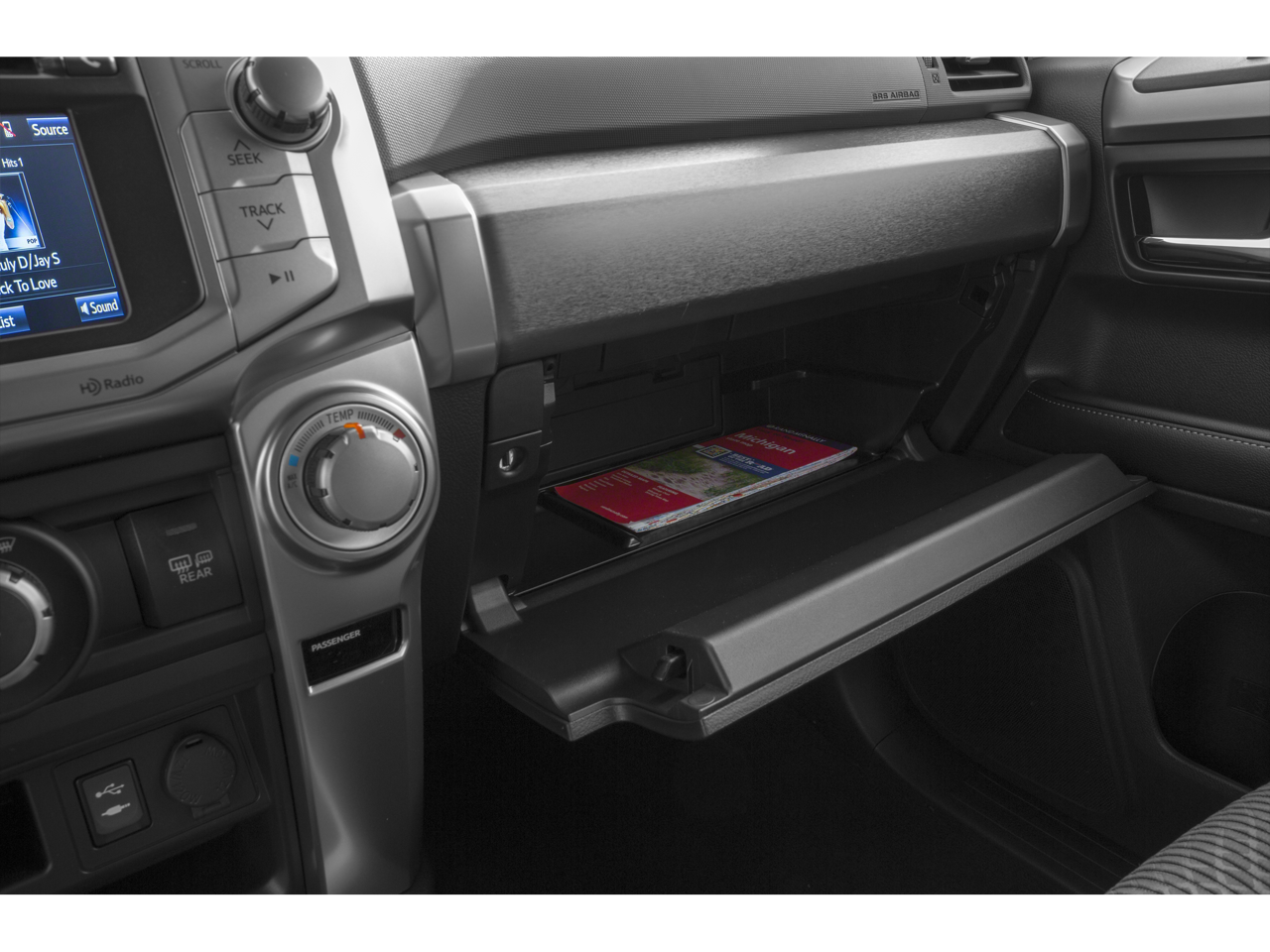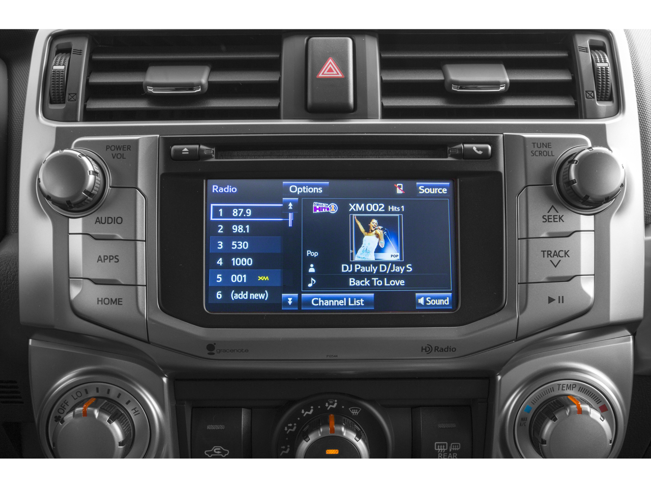 - Radio: Entune Audio Plus -inc: Entune Multimedia bundle (6.1-inch high resolution touch-screen display, AM/FM CD player, MP3/WMA playback capability, auxiliary audio jack, USB 2.0 port w/iPod connectivity and control, advanced voice recognition, hands-free phone capability, phone book access and music streaming via Bluetooth® wireless technology), SiriusXM All Access Radio w/3-month complimentary trial, HD Radio, HD traffic and weather in major metro areas, and integrated backup camera display, Entune App Suite includes Bing, Facebook Places, iHeartRadio, MovieTickets.com, OpenTable, Pandora and Yelp; real-time info including traffic, weather, fuel prices, sports and stocks Access to Entune services is complimentary for three years. See toyota.com/entune for details.