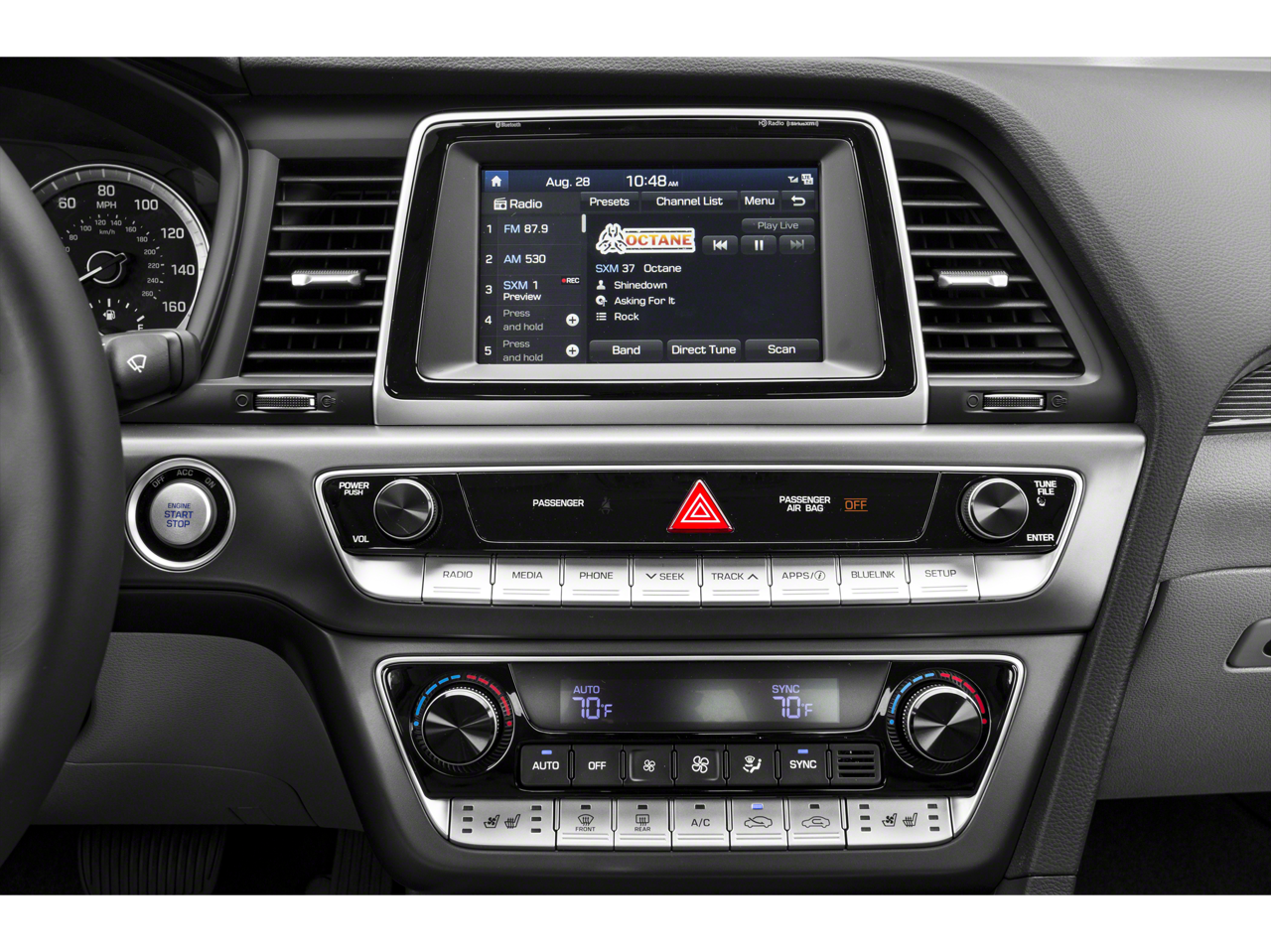 - Radio: AM/FM/HD/SiriusXM/MP3 Infinity Prem Audio -inc: navigation system, 8" high-resolution color touchscreen, HERE HD Traffic (real-time traffic service), SiriusXM Travel Link (complimentary trial), HD Radio technology w/multicasting, Apple CarPlay, Android Auto, integrated Bluetooth® w/phonebook transfer, 9 Infinity speakers (2 front-door-mounted, 2 tweeters, 4 rear w/coaxial mounted tweeters and subwoofer), iPod/USB and auxiliary input jacks, wireless phone charging and 400-watt external Infinity amplifier