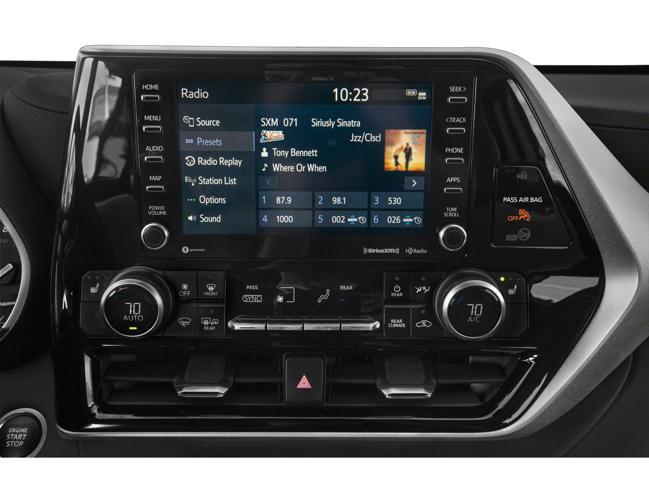 - Radio: Audio Plus -inc: 6 speakers, 8" touch-screen, HD Radio, USB media port, hands-free phone capability, advanced voice recognition and music streaming via Bluetooth® wireless technology, Android Auto, Apple CarPlay and Amazon Alexa compatible, SiriusXM w/3-month All Access trial, Connected Services - Safety Connect w/1-year trial, Service Connect w/10-year trial, Remote Connect w/1-year trial and Wi-Fi Connect w/up to 2GB within 3-month trial, See Toyota.com/audio-multimedia for details