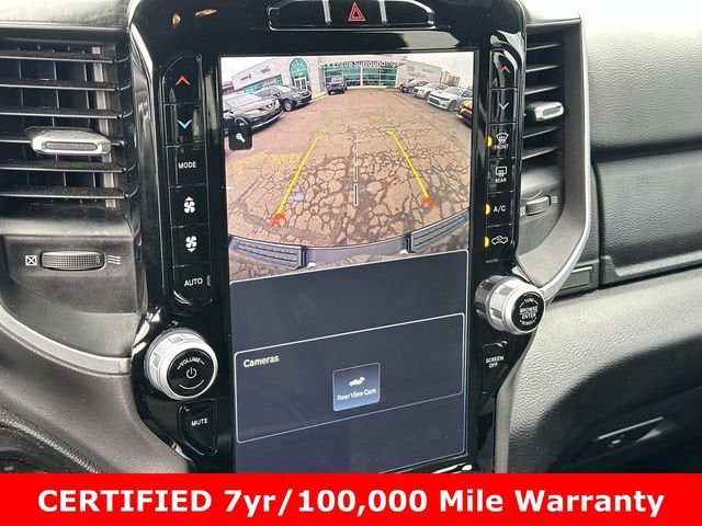 FCA US LLC Certified Pre-Owned Certified, FCA US LLC Certified Pre-Owned Certified, 115V Auxiliary Power Outlet, 12 Touchscreen Display, 2nd Row In Floor Storage Bins, 3 Rear Seat Head Restraints, 3.21 Rear Axle Ratio, 4 Way Front Headrests, 4-Wheel Disc Brakes, 400W Inverter, 48V Belt Starter Generator, 4G LTE Wi-Fi Hot Spot, 6 Speakers, 9 Amplified Speakers w/Subwoofer, ABS brakes, Air Conditioning, Air Conditioning ATC w/Dual Zone Control, All R1 High Radios, All Radio Equipped Vehicles, Alloy wheels, AM/FM radio, Apple CarPlay, Auto-Dimming Exterior Driver Mirror, Auto-Dimming Rear-View Mirror, Big Horn Badge, Big Horn Level B Equipment Group, Black Exterior Mirrors, Black Interior Accents, Black Premium Power Mirrors, Body Color Door Handles, Body Color Exterior Mirrors, Body Color Front Bumper, Body Color Premium Power Mirrors, Body Color Rear Bumper w/Step Pads, Brake assist, Bucket Seats, Bumpers: chrome, Center Console Parts Module, Class IV Receiver Hitch, Cloth Bench Seat, Cluster 7.0 TFT Color Display, Compass, Connected Travel & Traffic Services, Connectivity - US/Canada, Convex Wide-Angle Exterior Mirror Insert, Cruise control, Delay-off headlights, Deluxe Cloth Bucket Seats, Disassociated Touchscreen Display, Driver door bin, Dual front impact airbags, Dual front side impact airbags, Electronic Stability Control, Emergency communication system: SiriusXM Guardian, Exterior Mirrors Courtesy Lamps, Exterior Mirrors w/Heating Element, Exterior Mirrors w/Supplemental Signals, For Details, Visit DriveUconnect.com, For More Info, Call 800-643-2112, Front anti-roll bar, Front Center Armrest w/Storage, Front Fog Lamps, Front License Plate Bracket, Front reading lights, Front Seat Back Map Pockets, Front wheel independent suspension, Full Length Floor Console, Fully automatic headlights, Global Telematics Box Module (TBM), Glove Box Lamp, Google Android Auto, GPS Antenna Input, GPS Navigation, HD Radio, Heated door mirrors, Heated Front Seats, Heated Steering Wheel, Illuminated entry, Integrated Center Stack Radio, Integrated Voice Command w/Bluetooth®, Leather steering wheel, LED Footwell Lighting, Low tire pressure warning, Manual Adjust 4-Way Front Passenger Seat, Media Hub w/2 Charge Only USBs, MOPAR Front & Rear Rubber Floor Mats, Occupant sensing airbag, Outside temperature display, Overhead airbag, Overhead console, Panic alarm, ParkSense Front/Rear Park Assist w/Stop, ParkView Rear Back-Up Camera, Passenger door bin, Passenger vanity mirror, Power 2-Way Driver Lumbar Adjust, Power 8-Way Driver Seat, Power Adjustable Pedals, Power door mirrors, Power steering, Power windows, Power-Folding Mirrors, Quick Order Package 23Z Big Horn, Radio data system, Radio: Uconnect 3 w/5 Display, Radio: Uconnect 5 Nav w/12.0 Display, RAM Grille Badge - Chrome, Rear 60/40 Folding Seat, Rear anti-roll bar, Rear Center Armrest, Rear Dome w/On/Off Switch Lamp, Rear Power Sliding Window, Rear seat center armrest, Rear step bumper, Rear Window Defroster, Remote keyless entry, Remote Start System, Security Alarm, SiriusXM Radio Service, SiriusXM Satellite Radio, SiriusXM w/360L, Split folding rear seat, Sport Appearance Package, Sport Decal, Steering wheel mounted audio controls, Sun Visors w/Illuminated Vanity Mirrors, Tachometer, Telescoping steering wheel, Tilt steering wheel, Traction control, Trip computer, Universal Garage Door Opener, USB Host Flip, Variably intermittent wipers, Voltmeter, Wheels: 18 x 8 Cast-Aluminum Painted.