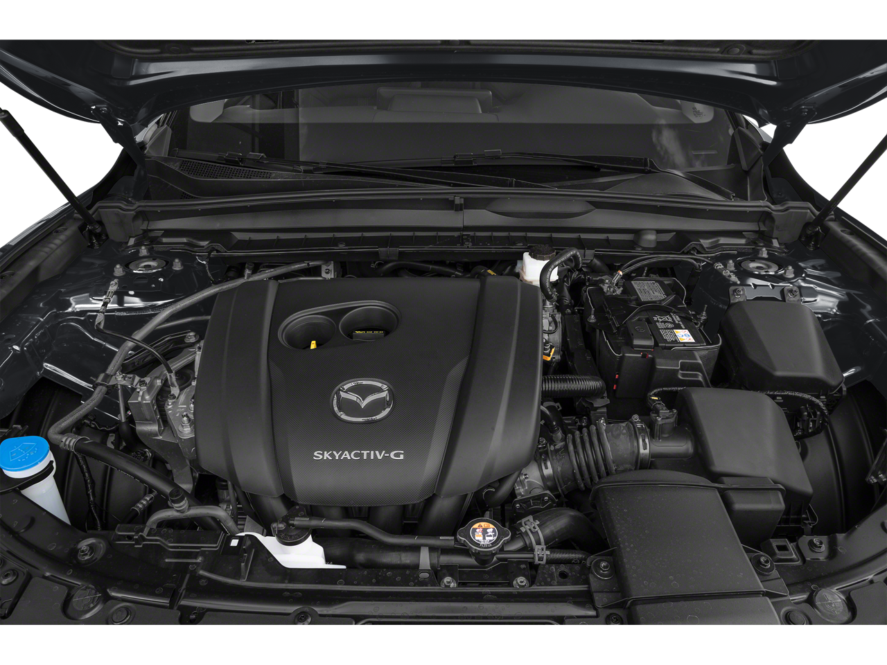 4-Wheel Disc Brakes, 8 Speakers, ABS brakes, Air Conditioning, Alloy wheels, AM/FM radio, AppLink/Apple CarPlay and Android Auto, Auto High-beam Headlights, Automatic temperature control, Brake assist, Bumpers: body-color, Cruise control, Delay-off headlights, Driver door bin, Driver vanity mirror, Dual front impact airbags, Dual front side impact airbags, Electronic Stability Control, Emergency communication system: MAZDA CONNECT, Exterior Parking Camera Rear, Front anti-roll bar, Front Bucket Seats, Front Center Armrest, Front dual zone A/C, Front reading lights, Front wheel independent suspension, Fully automatic headlights, Half Leatherette Seat Trim, Heated door mirrors, Heated Front Bucket Seats, Heated front seats, Illuminated entry, Knee airbag, Leather Shift Knob, Leather steering wheel, Low tire pressure warning, Occupant sensing airbag, Outside temperature display, Overhead airbag, Overhead console, Panic alarm, Passenger door bin, Passenger vanity mirror, Power door mirrors, Power driver seat, Power Liftgate, Power steering, Power windows, Radio data system, Radio: AM/FM/HD 8-Speaker Audio Sound System, Rain sensing wipers, Rear seat center armrest, Rear window defroster, Rear window wiper, Remote keyless entry, Speed-sensing steering, Split folding rear seat, Spoiler, Steering wheel mounted audio controls, Tachometer, Telescoping steering wheel, Tilt steering wheel, Traction control, Trip computer, Turn signal indicator mirrors, Variably intermittent wipers, Wheels: 17 x 7J Aluminum Alloy Black Metallic Finish.
