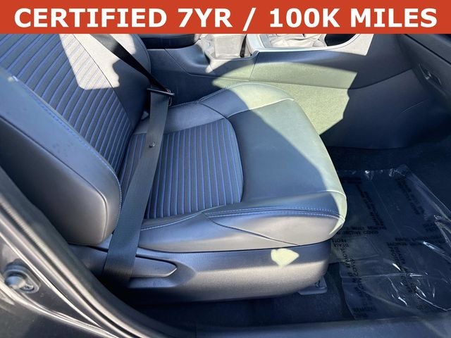 Inside, the XSE offers a tech-forward experience with a standard 10.5-inch Toyota Audio Multimedia touchscreen—a significant jump from the 8-inch screen found on lower trims. The cabin is finished in SofTex®-trimmed seats with blue accents and stitching, unique to this trim. For performance, it utilizes the same efficient 2.5L hybrid powertrain as other models, delivering a combined 219 horsepower with an impressive EPA-estimated 41 city / 38 highway MPG